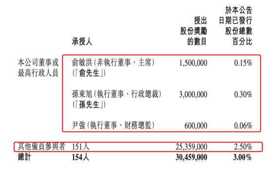此次股份奖励对象供154名,授出股份奖励的总数为3045.9万股。按照4月11日的收盘价29港元/股计算,总市值约8.83亿港元(人民币7.75亿元)。