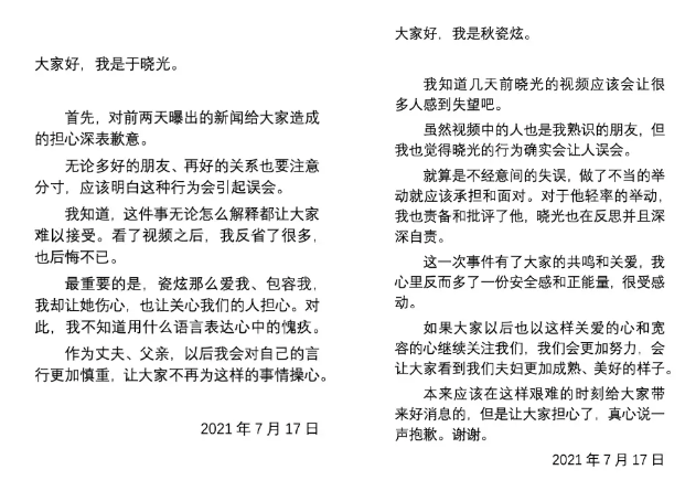 可面对丈夫的出轨和网友的支持,秋瓷炫却写了封比于晓光还长还真诚的道歉信:“会让大家看到我们夫妇更成熟、美好的样子”。