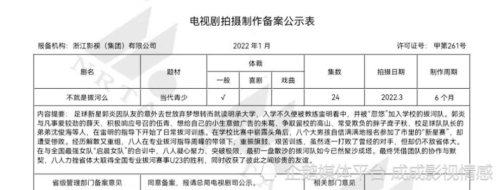 浙江卫视黄金档4.23预计播出竞技剧《不就是拔河么》。