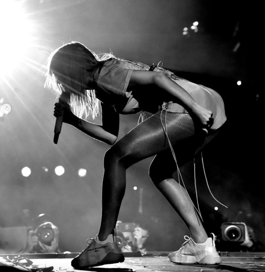 重要的是感知身体给予的反馈,训练自己由内而外的好状态,而不是满足外在的体系标准。在演唱会现场,状态好到发光的她甚至还会做出秀肌肉的姿势~那些说她胖了的声音,见鬼去吧!