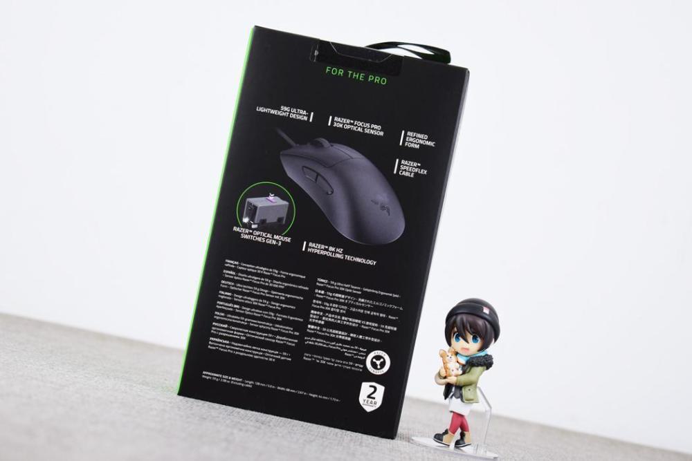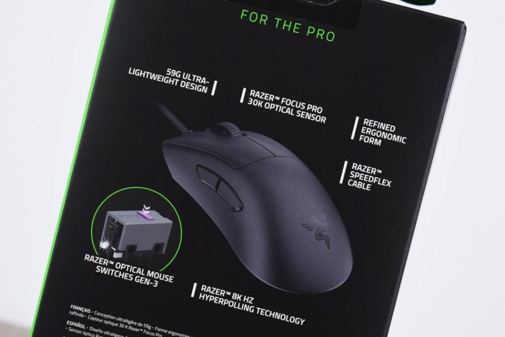 相比过去满身灯效的雷蛇鼠标而言,炼狱蝰蛇V3的产品定位是“FOR THE PRO”,管家个人理解则为更专业更硬核,这点在配置也能体现:59g轻量化机身、RAZER FOCUS PRO 30K光学引擎、8K刷新率、类肤质涂层机身、伞绳线以及第三代雷蛇光学微动,几乎每一个特性都围绕用户体验。