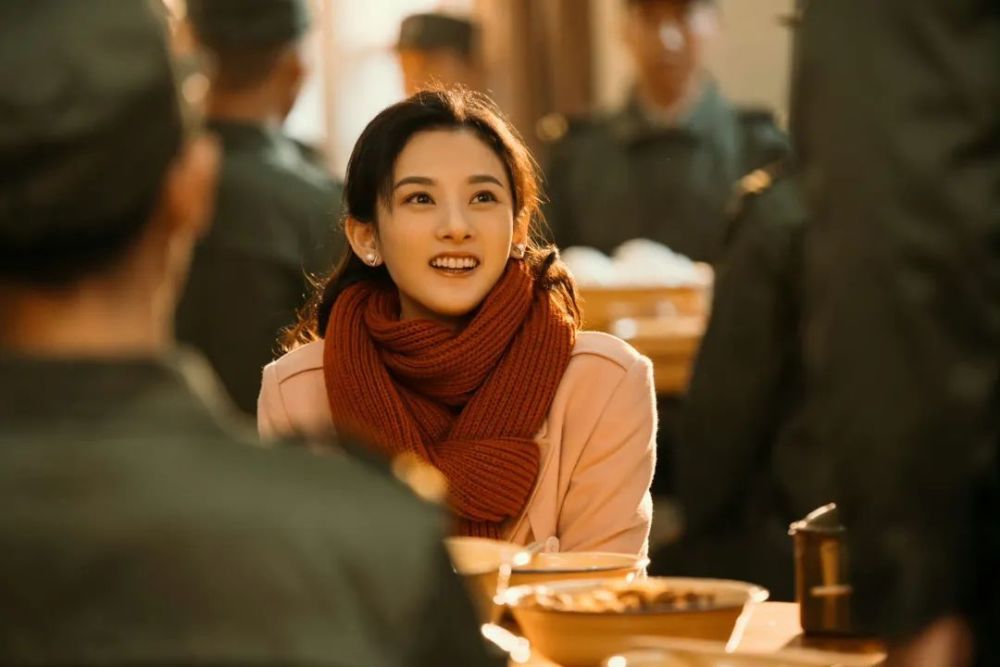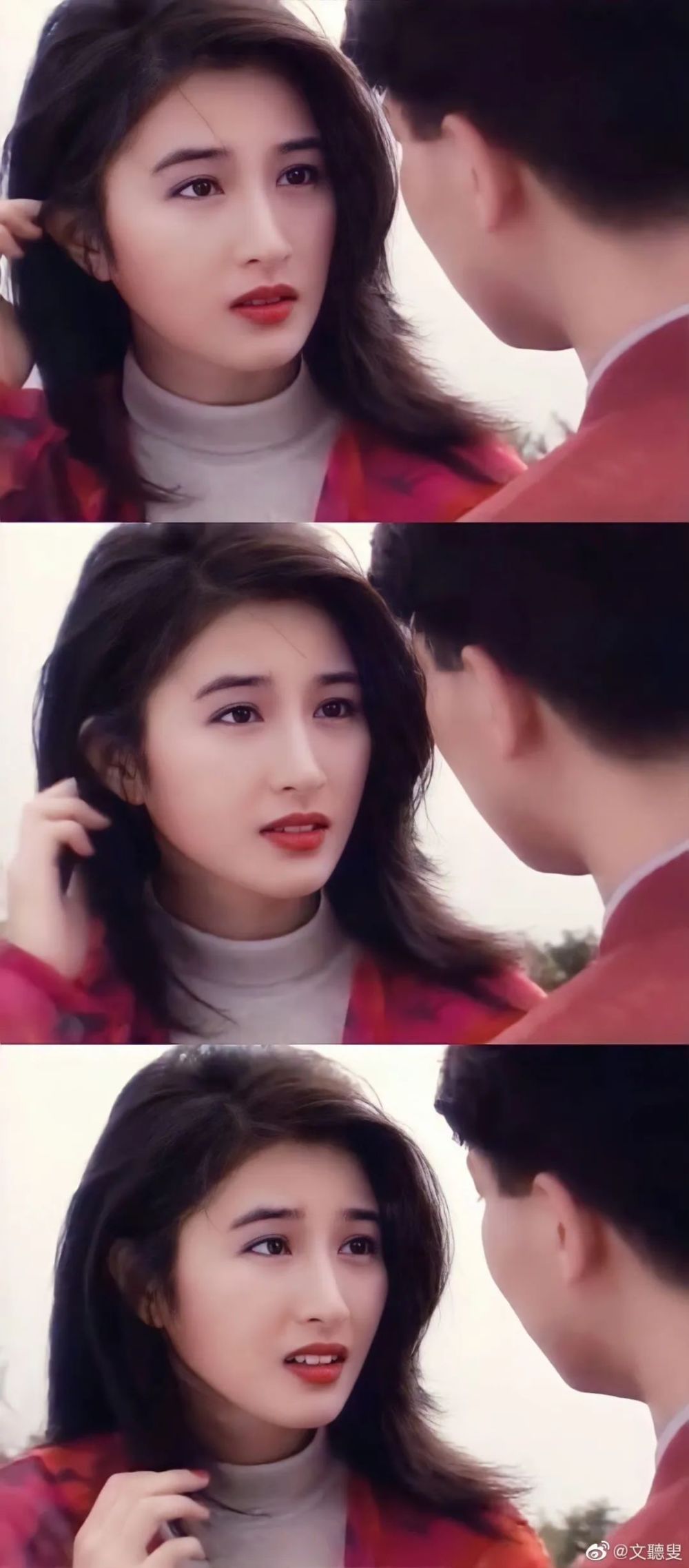80年代标志性的粗针织大红围巾在她身上丝毫不显乡土,反而衬的人甜美清纯,娇憨可爱。