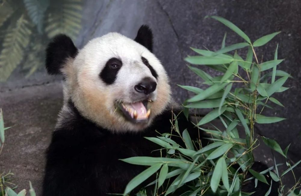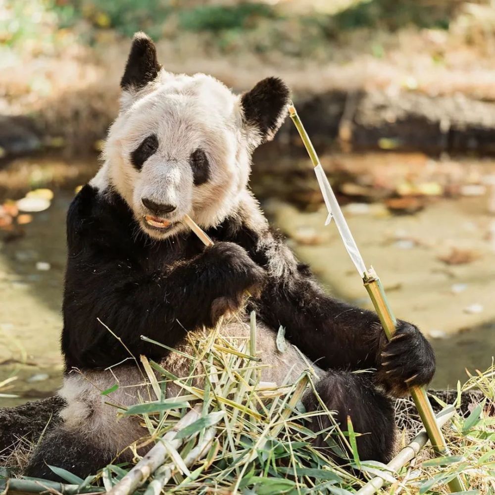 2023年2月10日,美国孟菲斯动物园,大熊猫“丫丫”正在吃竹子。GiantPandaGlobal 图