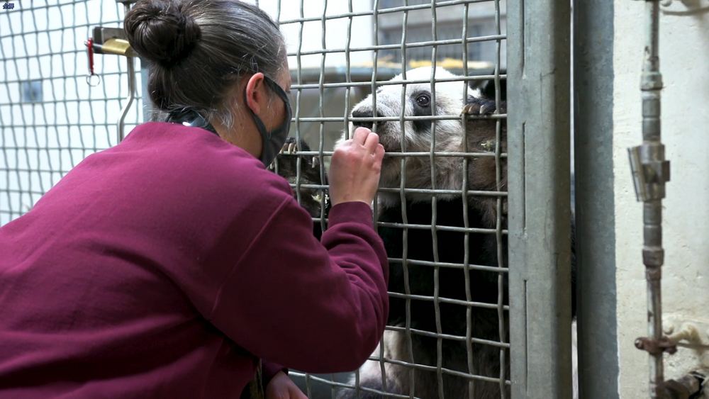 2023年3月18日,美国孟菲斯动物园,中国专家组检查“丫丫”的居住环境与食物品质。视频截图