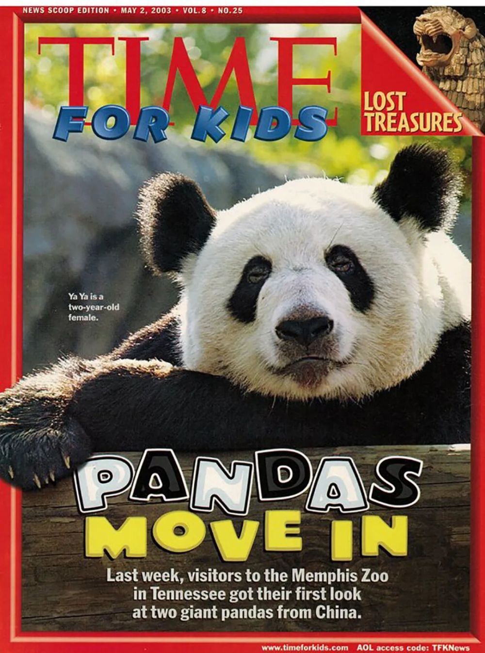 2003年5月2日出版的《时代》杂志儿童版封面庆祝大熊猫“丫丫”的到来。