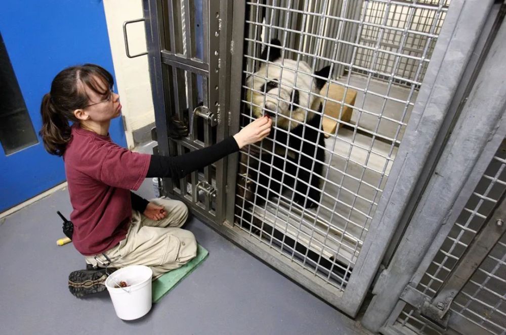 孟菲斯动物园工作人员在对大熊猫进行行为训练。中国动物园协会官网 资料图