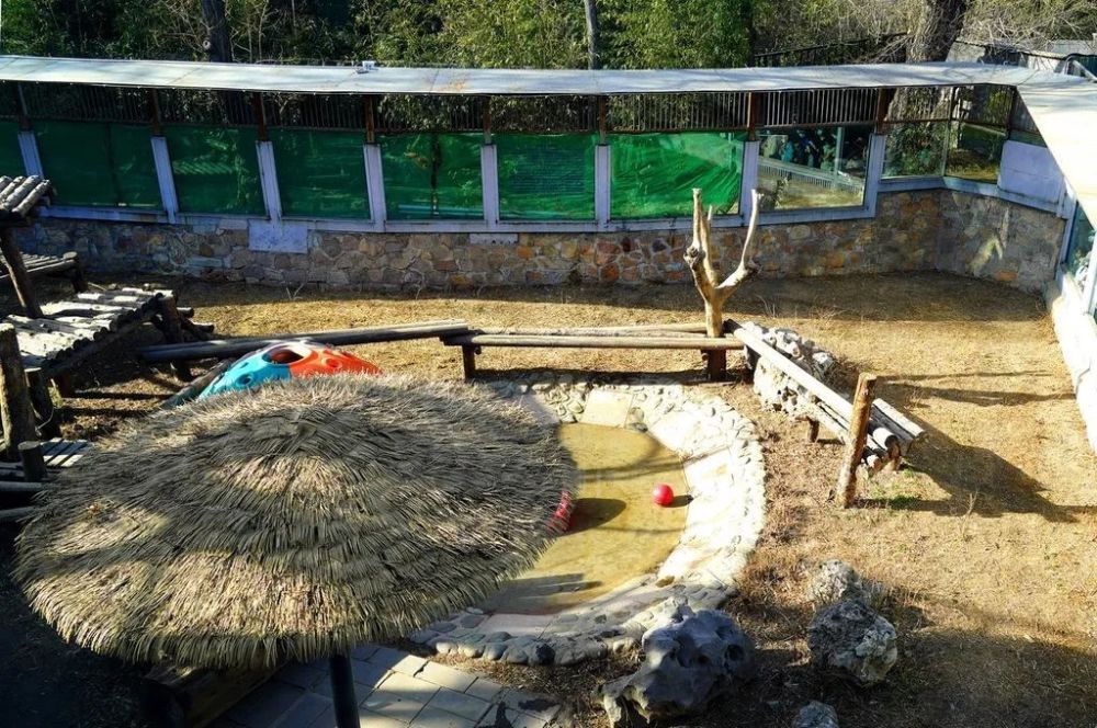 北京动物园大熊猫馆“萌兰”的家,图中绿布后面据信是“丫丫”回国后的家。