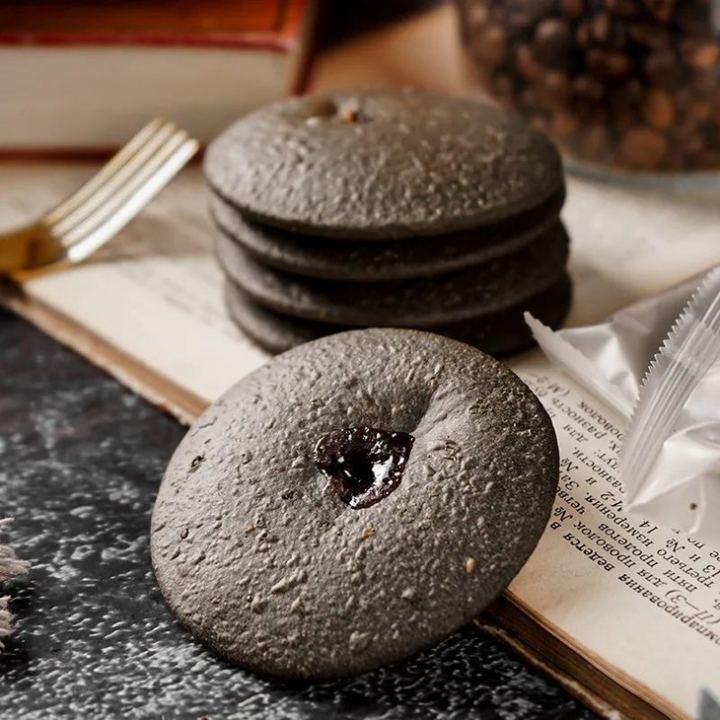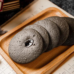 这款很受欢迎的“肚脐饼”,聚集了黑豆、黑米、黑芝麻、黑枸杞、黑桑葚五种黑色原料,里面还有红糖薄层夹心。酥软结合不掉渣,还带有微微红糖甜,五谷烘烤香浓郁,每一口都能吃到浓浓的芝麻香,回味悠长。