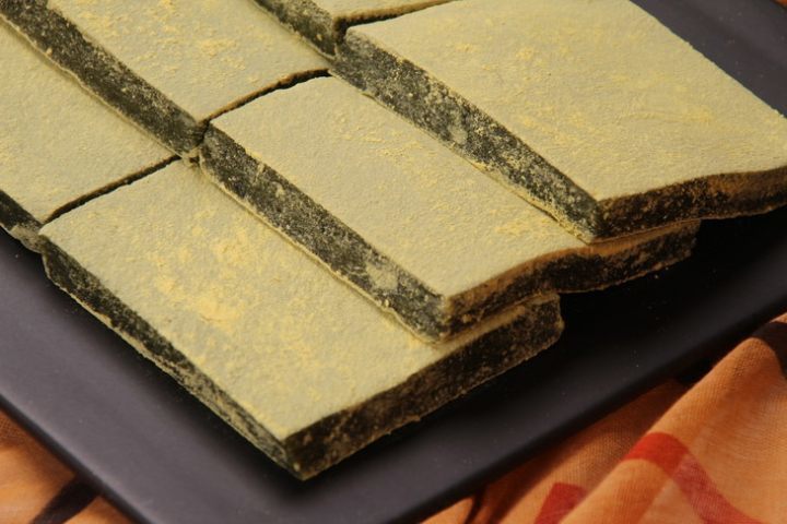 纯手工石锤,一下下敲出来的艾青麻糍,也可以看作是一个撒了黄色松花粉的巨大的艾青团子。透着丝丝艾青特有的清香,放进嘴里咬上一口,滑溜溜、软绵绵。蘸糖蘸盐、裹蛋液煎,各种吃法都可以。
