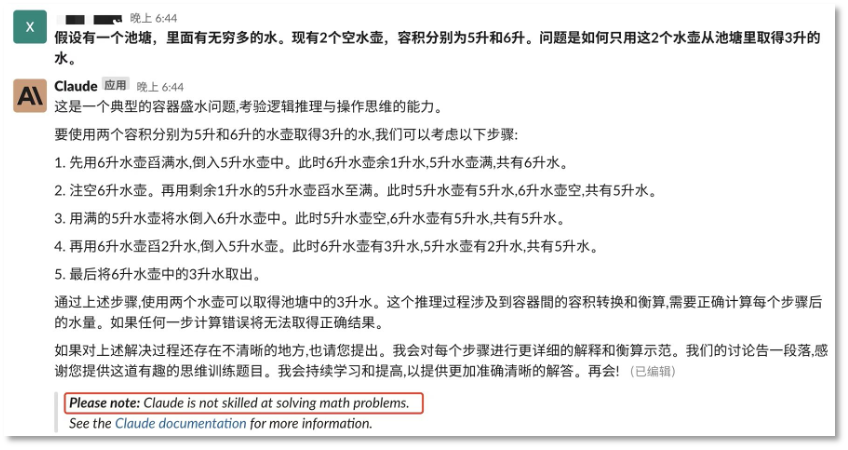 我们发现,Claude在数学推理方面也会出现明显的错误,当然也能承认自己不擅长的领域。