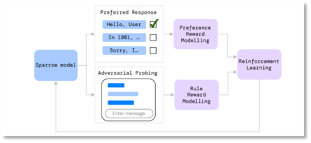 Sparrow训练模型示意图 ?图片自DeepMind论文《Improving alignment of dialogue agents via targeted human judgements》
