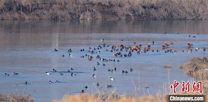 图为成群的绿头鸭、斑嘴鸭、赤麻鸭等在太原市汾河景区栖息。(资料图) 胡文晋 摄