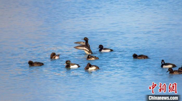 图为凤头潜鸭在太原市汾河景区栖息。(资料图) 胡文晋 摄