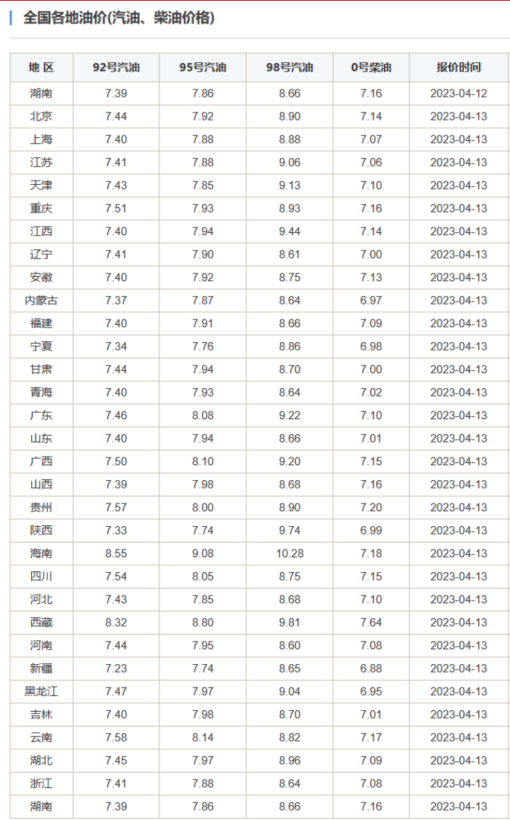 从最新报价的全国各地油价来看,除西藏、海南两省外,各地92号汽油维持在7.23-7.58元/升,95号汽油则在7.74-8.14元/升。如本次上调幅度能够按目前预测情况进行,大部分地区的95号汽油价格将重返“8元时代”。