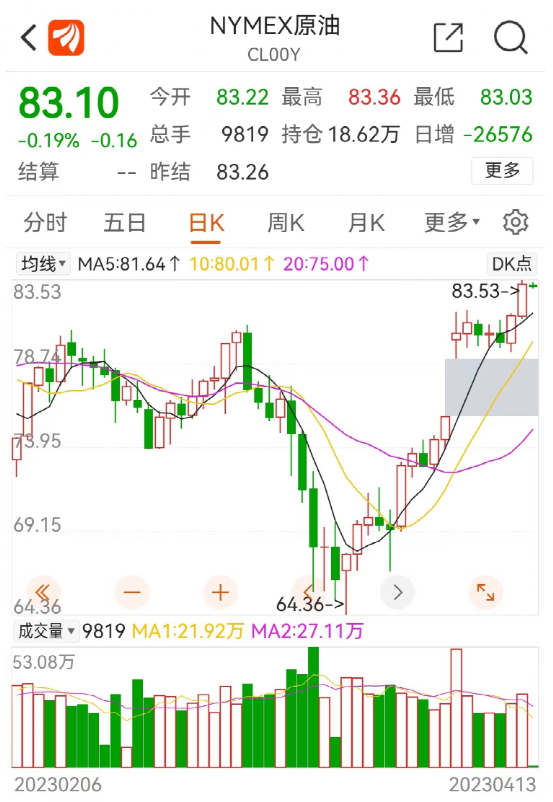 国内成品油上调预期背后,是近期国际油价的持续走高。美国3月CPI下降显示美国通胀放缓,美联储加息压力有所缓解;美国能源信息局最新数据显示,上周美国汽油库存环比下降,多方因素共振提升国际油价。