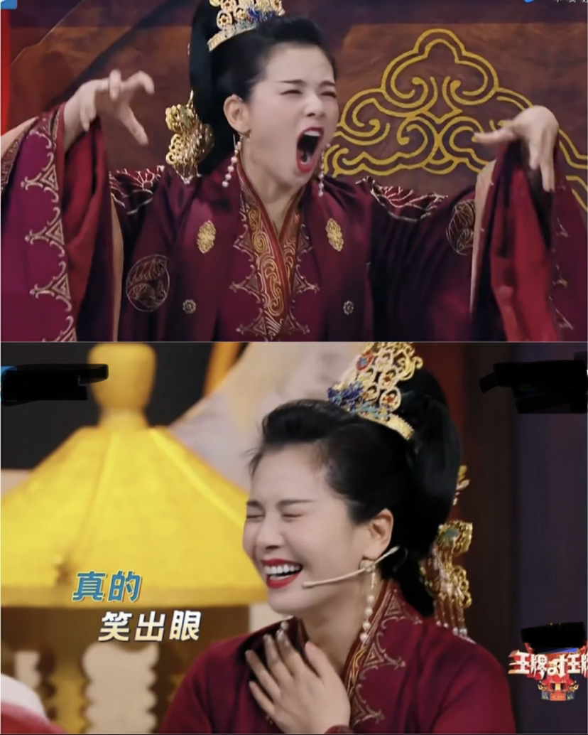 刘涛不仅笑趴下了,还笑出了眼泪,拿袖子小心地擦着,不能让眼睛上的妆花了,录个节目容易吗?