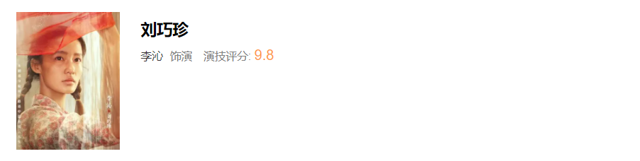 第二名,李沁饰演刘巧珍,评分9.8