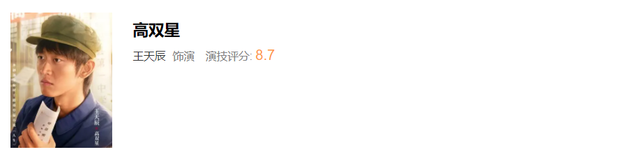 王天辰同样把高双星演活了,他有积极热血的一面,但也有龌龊自私的一面,角色的人性复杂被王天辰演的很真实,拿到了8.7的演技评分。