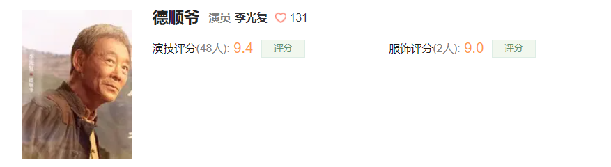 在剧中仅出场几次的德顺爷,无疑是一个相当讨喜的角色,他专情而又深情,对待人生清醒通透,每一次从他嘴里说出人生道理,都显得很有说服力。不得不说,李光复老爷子的演技已经到了炉火纯青的地步。