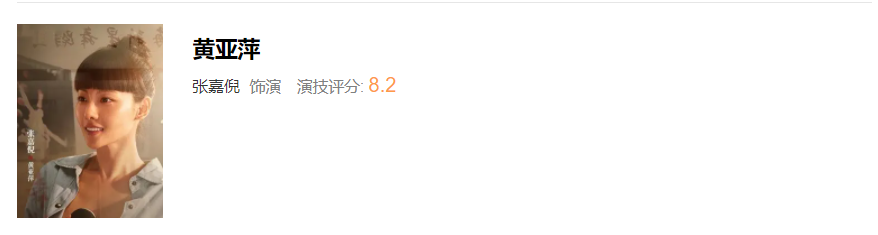 第八名,张嘉倪饰演黄亚萍,评分8.2
