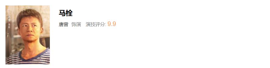 第一名,唐曾饰演马栓,评分9.9