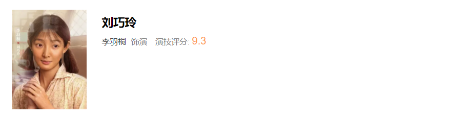 第五名,李羽桐饰演刘巧玲,评分9.3