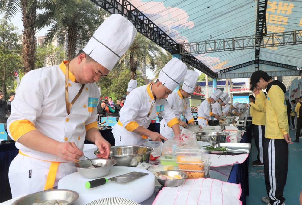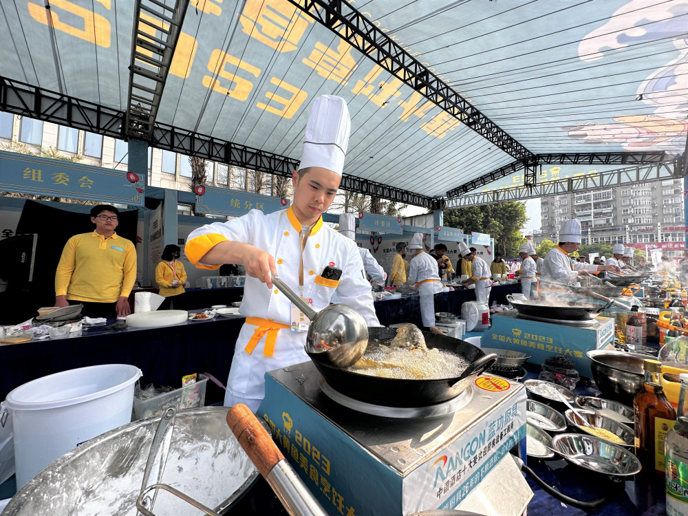 比赛过程中,他们以现场提供的大黄鱼为主料,在规定的90分钟内制作完成2款不同技法、风味各异的大黄鱼美食。只见身穿清一色工服的厨师站成一排,掌上炊具翻飞,蒸、煮、炸、烤、煎……各种烹饪方式齐上阵,200多道造型独特、味道鲜美的大黄鱼菜品陆续出炉,香气四溢,让在场的人“烹”然心动。