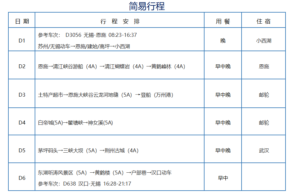 6、导服:全程陪同,三峡、恩施、武汉当地导游