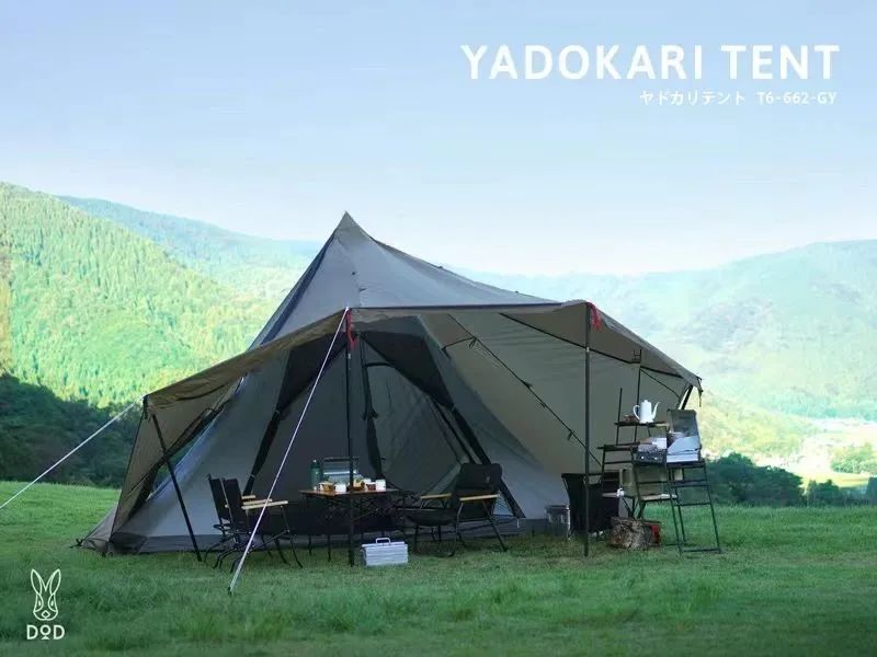 日本轻奢户外品牌DOD,带来一款适合亲子家庭使用的“寄居蟹”帐篷。帐篷的前面可以用天幕杆支起,形成一个大庇护所,金字塔帐变形成“一室一厅”,再加上双后门设计以及顶窗,无论冬夏,露营都十分舒适!
