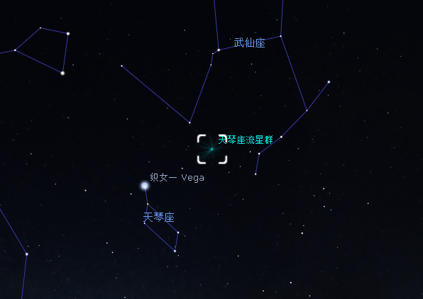 天琴座流星群辐射点位置示意图 图源:星图软件
