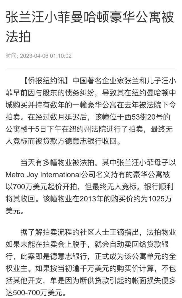 汪小菲在曼哈顿的物业,一套位于西53街20号的房产,因一直断供,法拍又无人竞标,最终被法院收回。