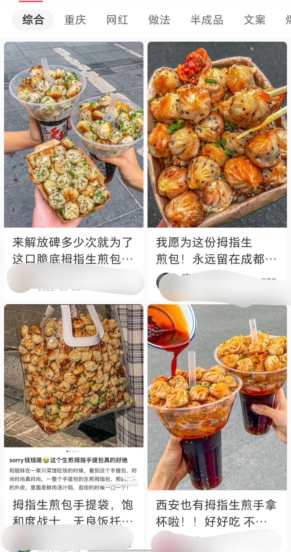 2022年爆红的拇指生煎包,正是采取人海战术的打法,差不多的内容饱和式轰炸用户,达到类似脑白金广告的洗脑效果。