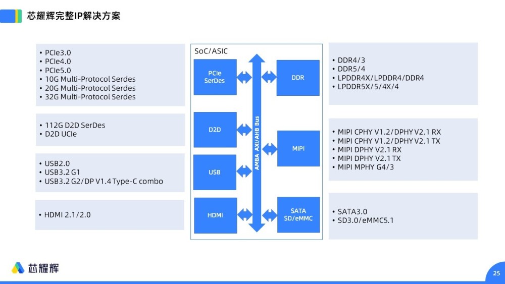 成立于2020年6月的芯耀辉凭借IP产品质量好、稳定性高、兼容性强、跨工艺、可移植等独特的价值和优势,以及强大的本地化支持服务,短短数年已经在IP研发与产业化上实现一系列重大突破。其IP产品和服务已获得众多客户量产使用,不仅实现了国产先进工艺平台最全的IP覆盖,在PCIe、DDR、USB、MIPI、HDMI、Storage以及多协议的IP上均有完整产品组合的布局,并提供底层制程定制化,集成设计自动化赋能到系统验证产品集成等全流程的支持,具备了非常丰富的可量产跨工艺、多产品、多应用验证IP,完整前后端服务,凸显差异化特性的经验和能力,团队研发的DDR5/4 PHY IP在相关工艺上更是超越了全行业最高速率。