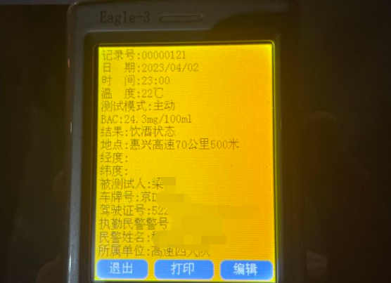 民警立即对其进行呼气式酒精检测,检测结果显示梁某体内酒精含量为24.3mg/100ml,属于饮酒后驾驶机动车。