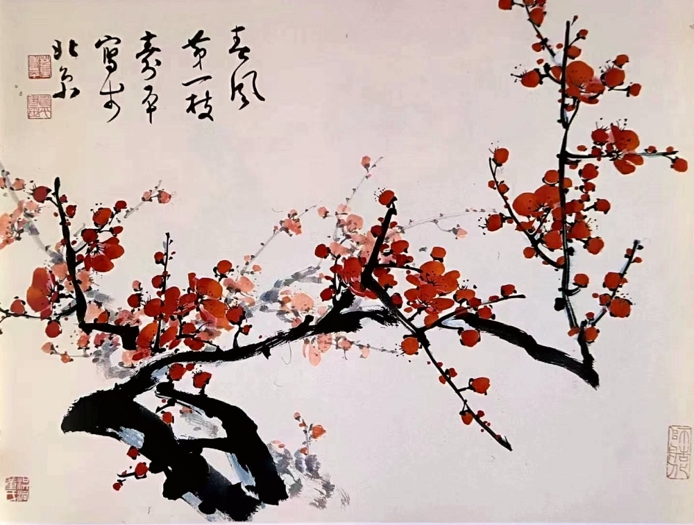 启功曾著文自述与董寿平的渊源,是先识其画,后交其人。初识其画时启功年尚“未冠”,故可推算时间约在一九三零年前后。那张给启功留下最初印象的画,正是董氏的梅花:“首见古色笺本梅花一株,焦墨写枝。铅脂点瓣。仿佛香出于纸上。”此文写于一九八五年,距他初见董氏梅花已近六十年,可见印象至深。