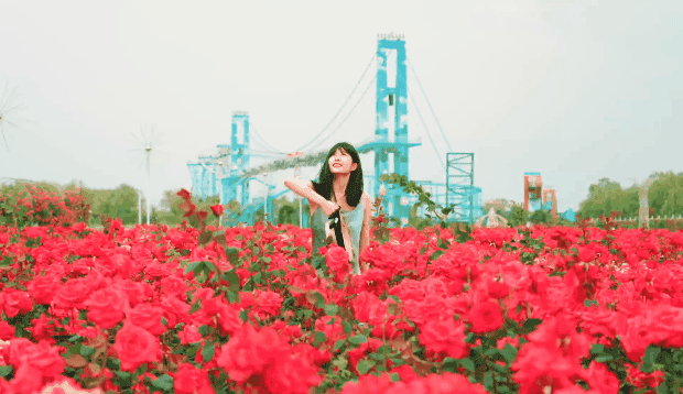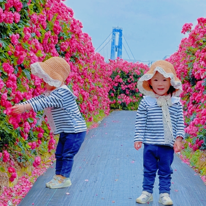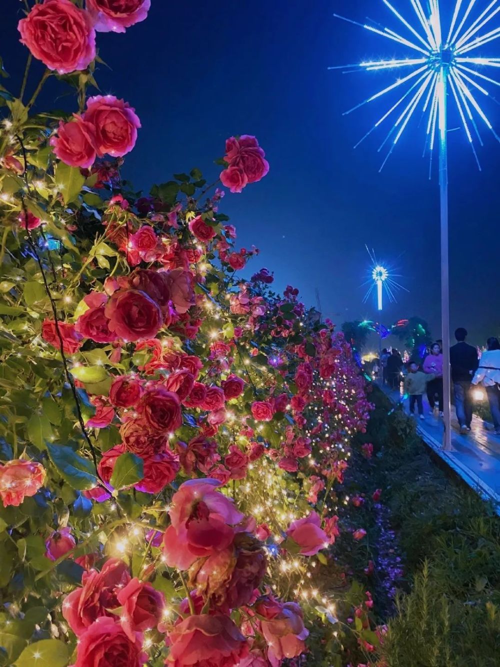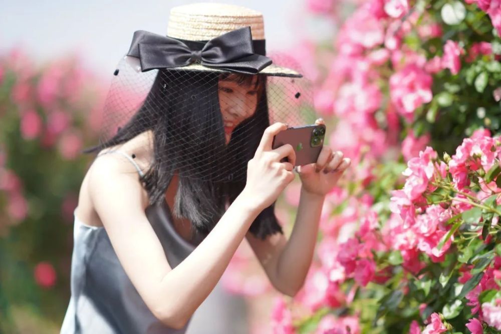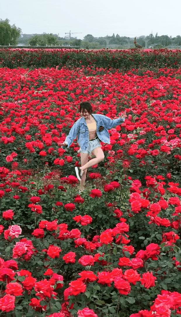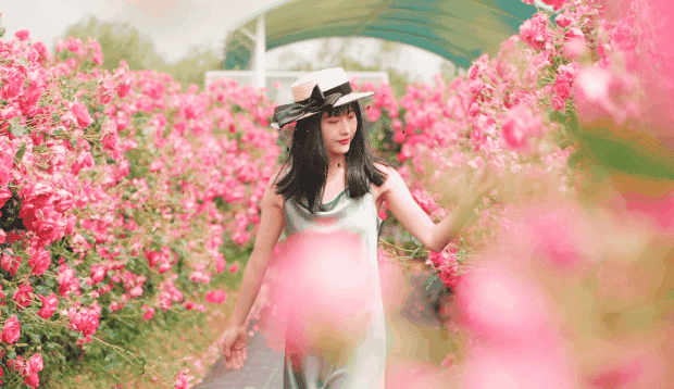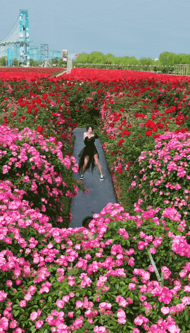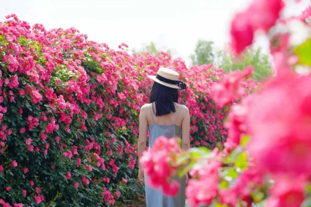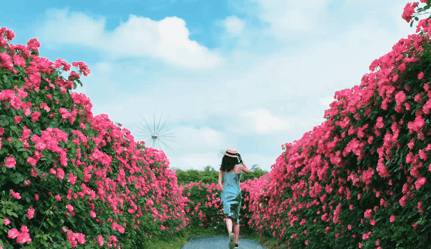 玫瑰花色彩绚丽漫步其中,微风拂过