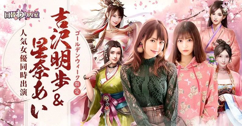 (这句文案翻译成中的大致意思是:夫君,好久不见!别忘了黄金周之约 吉泽明步&星奈爱 当爱靠近)