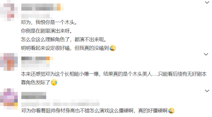 五官僵硬,眼神太木,看了他的表演。