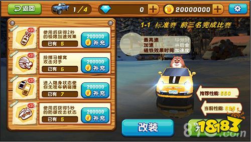 宝剑配英雄,名车送狗熊。车库里早已备好吉普越野车、肥皂车、美式肌肉车和复古车供你选择。你还可以使用“金币”对自己的车辆或者角色进行性能升级。