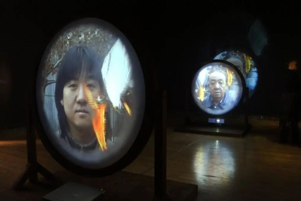 宋冬,《父子照镜子》,2001,双屏录像行为装置
