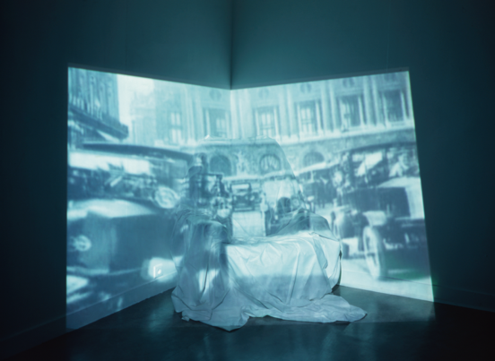 安东尼·蒙塔达斯,《午睡》,1995,录像装置,彩色,有声,罩着布的沙发,9分06秒