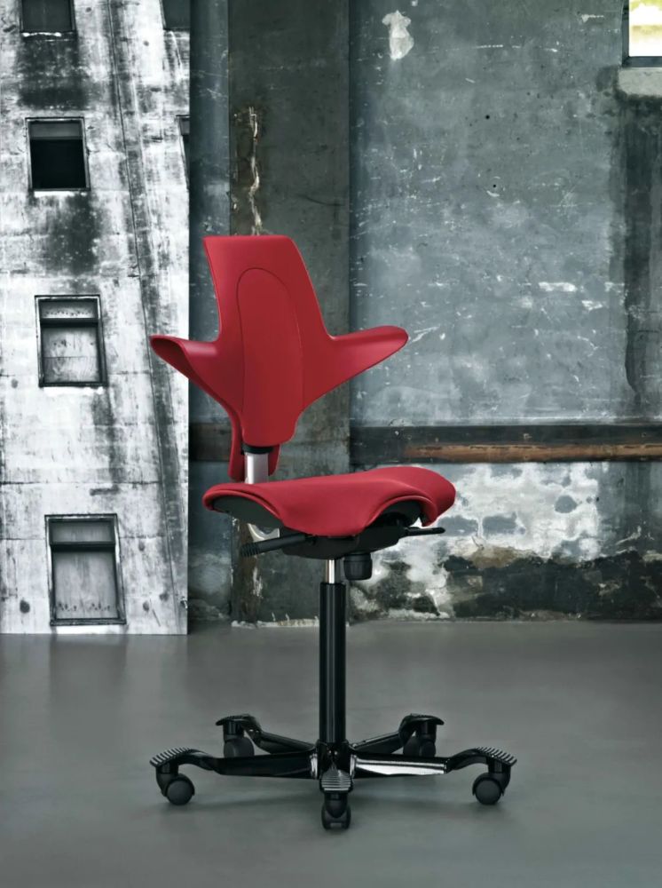 20世纪70年代,设计师尝试去寻找更佳的坐姿。通过长时间的观测和考察发现,擅长马术的人通常都身姿挺拔,体态优雅,即便长时间地坐在马背上,依旧能保持良好的姿态以及上半身的良好平衡,这便成了骑马椅的灵感来源。