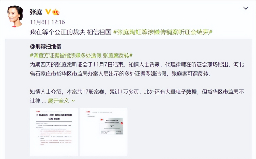 2021年陶虹从淘不庭撤资,当时有媒体报道。后续的时间里,陶虹忙着与张庭夫妇切割。