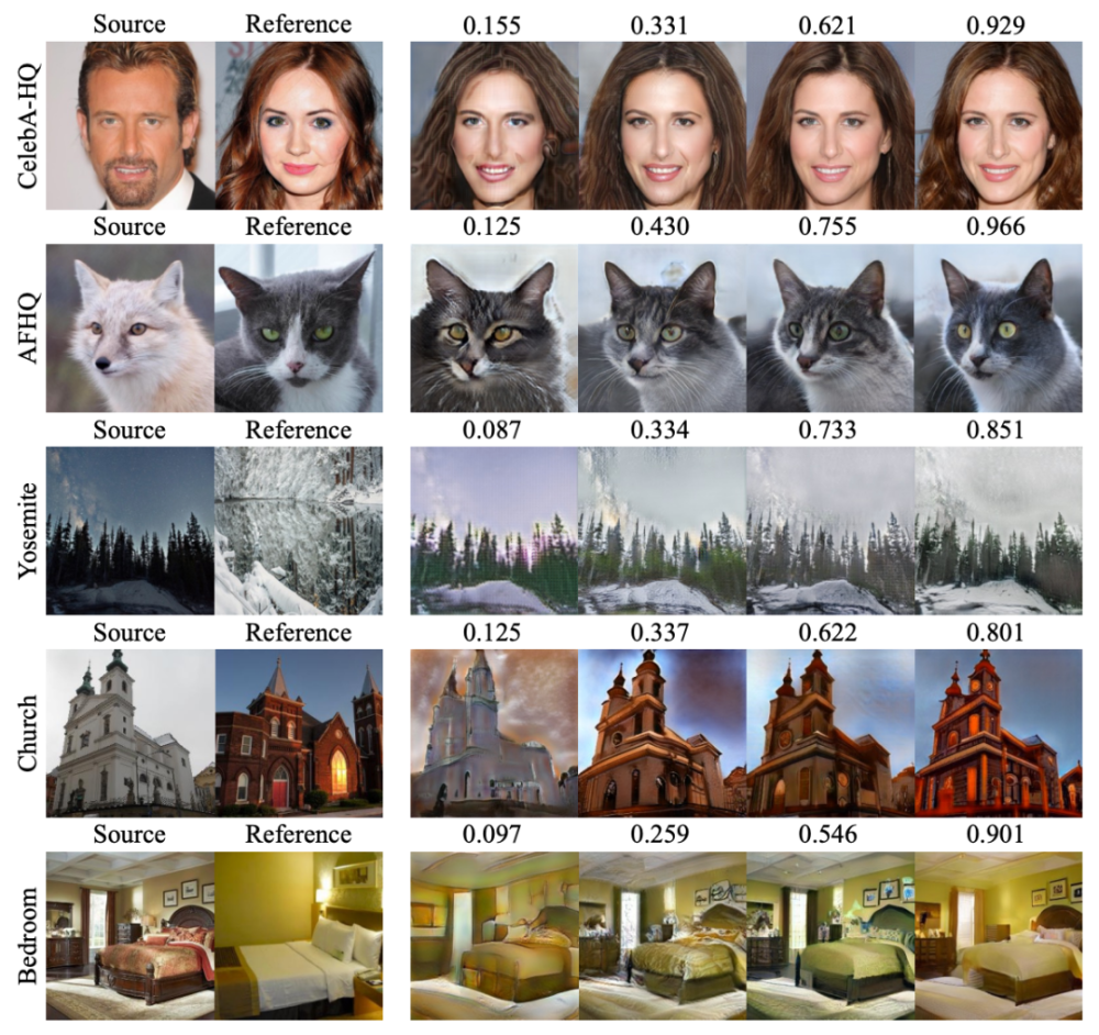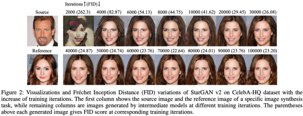 RISA 的训练数据来自一系列 GAN 训练过程中的中间模型的生成图像,以下图中给出的一性别转换任务为例,可以看到,在 GAN 的训练早期,模型随着训练迭代轮数的增加,生成图像的质量会有显著的提升;而在训练后期,模型的生成图像的质量会趋于稳定。