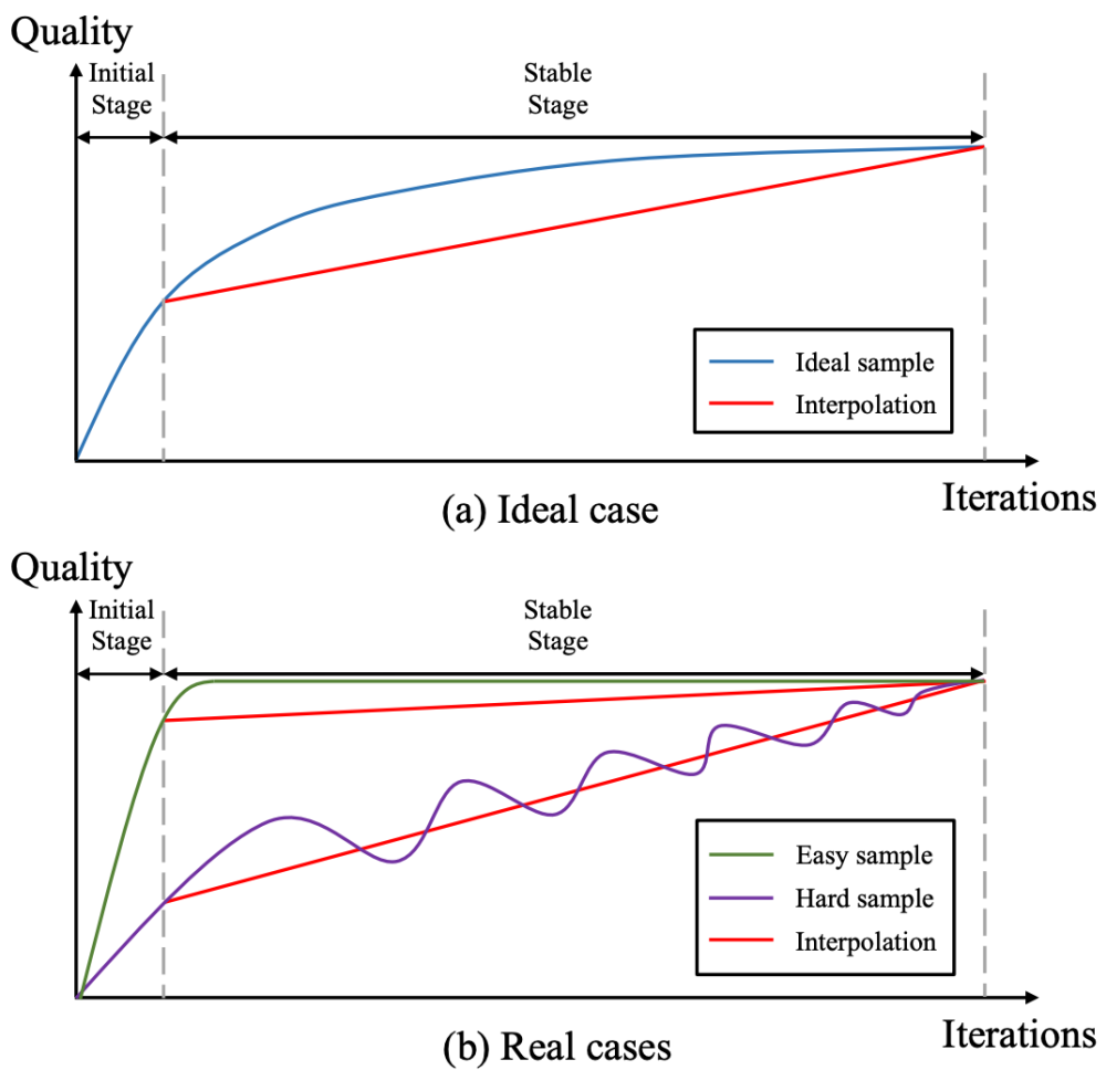 本文采用一系列中间模型的生成图像作为 RISA 的训练数据,这些图像的样本标签由其对应模型的训练迭代轮数得到。但显然这样的标注形式不太适合训练后期的模型,因为训练后期生成图像质量不会有显著的变化。为了使训练数据更适合 RISA 的训练,文中采用了 pixel-wise interpolation 的技巧,即图像空间的线性插值,用于估计训练后期图像质量变化。