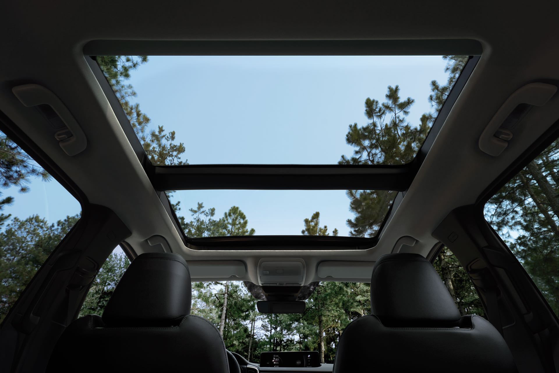 而全景天窗这个痛点马自达这次解决的也很完美,区别于千篇一律的“拉长”,MAZDA CX-50采用独一无二的“拓宽”。其横向采光宽度可达到767 mm,更能为乘员带来开放通透的感觉,在户外也能拥有更沉浸式的乘坐体验,这也将是同级别车型中最宽的全景天窗。想象一下周末当一家人在野外露营、野炊时,直接把后排放倒后,透过天窗和家人一起睡在风景里,躺着看美景。
