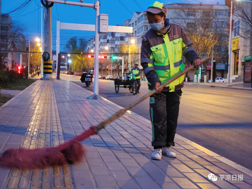 黎明时分,平凉这座城市显得格外宁静,路灯昏黄,街道上除了偶尔驶过的车辆,几乎看不到行人。此刻,环卫工马霞已经来到了宝塔路路段,开始她一天的工作。她的心愿很简单,就是想在大家出门后可以看到一条干净的街道。