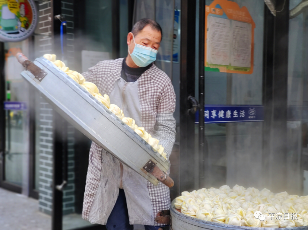 漫步在平凉城的大街小巷,你会看见外卖小哥骑着“电驴”奔忙的身影;工人们身穿工作服、佩戴安全帽,在人行道上铺设地砖,为打造海绵城市,紧张有序地忙碌着;一笼笼热气腾腾的馒头新鲜出锅……