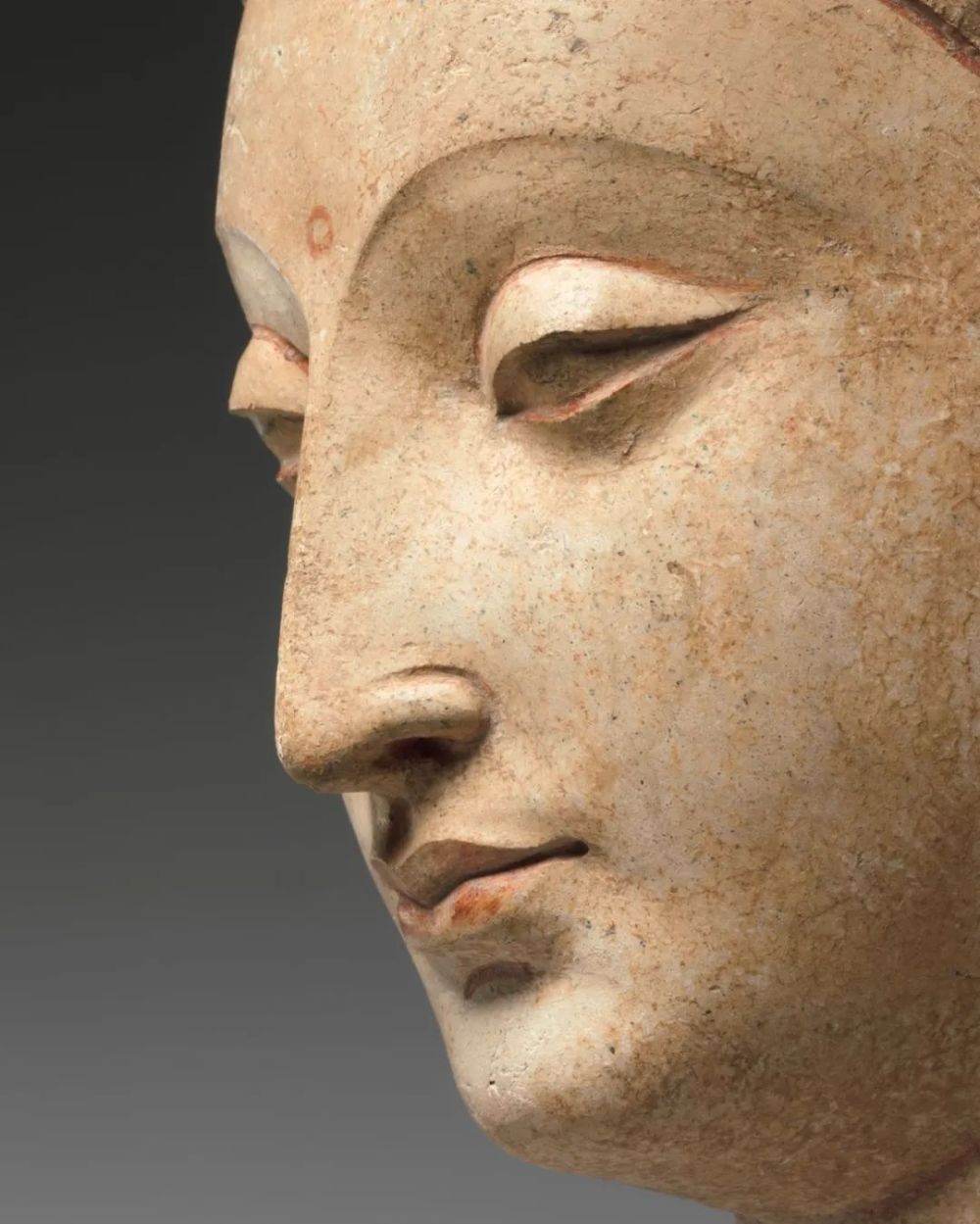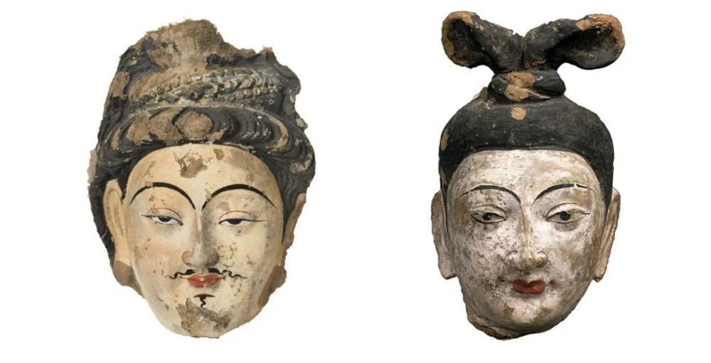 左图 / 佛像头部? ? 新疆库木吐喇? 彩绘塑像? 6-7世纪