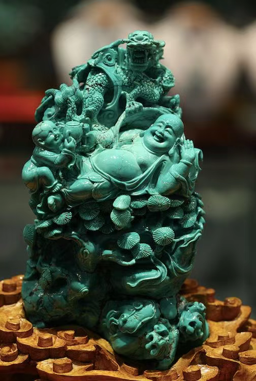 这里有十堰第四张名片绿松石。世界上70%的绿松石出自十堰,十堰因此被誉为“东方绿松石之乡”。